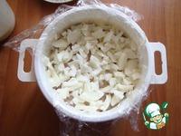 Концы плёнки подбираем, накрываем крышкой и отправляем в холодильник постоять и пропитаться. Можно на час, а можно и на ночь. |
