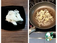 Лук очистите, нашинкуйте полукольцами и спассеруйте в разогретом оливковом масле до золотистого цвета. |