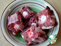 Говяжий хвост как следует промыть в холодной воде. Обсушить и разрезать между суставов на несколько частей... |