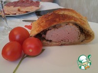 Описание: Представляю вашему вниманию запеченную телятино в слоеном тесте. Очень быстрый в приготовлении, мясо мягкое и нежное. Начинку можно использовать любую, на Ваше усмотрение!