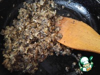 Обжарить порезаный лук, порезать мелко грибы и добавить к луку, обжарить, посолить и добавить сметаную. Тушить минут 10. |