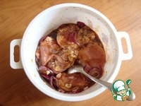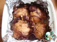 Пол-часа прошло в печи Открываем бёдра мы! Доливаем маринад, Получилось всё-отпад!!! Их красиво запекаем, На минут пятнадцать ставим! |
