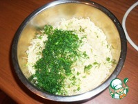 Пока тесто замешивается, приготовим начинку. Сыр трем на терке со средними ячейками. Чеснок пропустить через пресс. Укроп мелко нарезать. Все аккуратно перемешать. |