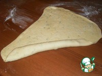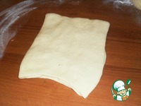 Готовое тесто разделить на 5 кусочков (я брала продукты для теста в 1,5 раз больше). Каждый раскатать в прямоугольник и посыпать начинкой. |