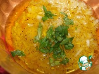 Натрем чеснок на терочке поменьше. Добавим зелень, посолив чуток. Да, не забудем черный перец! Воды немножко, масла на глазок. |