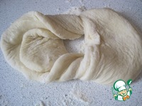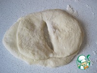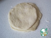 Булочку собираем из 3 раскатанных лепешек (не обязательно одного размера), смазанных между собой растительным маслом. |