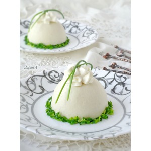 Застывший мусс сервировать. На поверхность отсадить крем шантильи, украсить зеленью. |