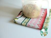 Сформировать тесто в шар, выложить в смазанную маслом миску. Я взяла мерную кружку, на ней отчетливо видно, как тесто увеличивается в размерах. |