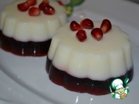 Готовый десерт осторожно извлеките из формочек, на несколько секунд поместив формочки в кипяток. После переложите желе на десертные тарелочки и украсьте зернышками граната. |