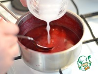 Размешать крахмал в воде и потихоньку добавить в малиновую смесь. Варить до загустения. Поставить остывать. |