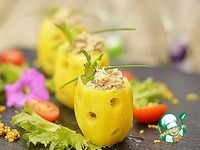 5. Отваренный на пару картофель остудить. Заполнить картофель селедочной массой ложкой или с помощью кондитерского мешка и украсить по желанию. |