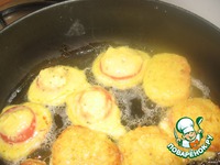 Приготовить кляр: сыр натереть на мелкой терке, взбить яйца. Перемешать сыр, яйца, сметану (майонез), посолить. Кляр получается густой. |