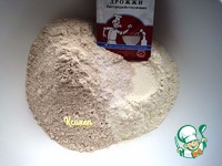 В посуде для замешивания теста смешаем соль и два вида пшеничной муки. |