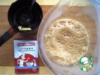 Через час тесто заметно "подросло" и стало воздушным. Обминаем тесто, снова укрываем и оставляем ещё на 30-40 минут или до увеличения в объёме в два раза. |