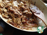В центре каждой галеты выложить начинку из бекона и грибов. |