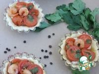 Описание: Предлагаю вашему вниманию Тарталетки с рикоттой, креветками и помидорами черри, а также тарталетки со сладкой начинкой из рикотты, взбитых сливок и винограда. Запах при приготовлении этой закуски разносится по всей квартире и возможно даже по соседям)))
