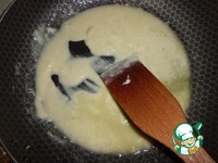 Растапливаем сливочное масло на сковороде, добавляем муку и размешиваем. |