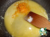 Снимаем цедру с одного апельсина, выжимаем сок (из двух). |