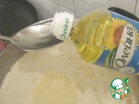 В смесь вводим растительное масло ТМ"Олейна". Хорошо взбиваем. |