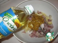 Соединяем селёдку с натёртым яблоком и дижонской горчицей, добавляем масло ТМ"Олейна". |