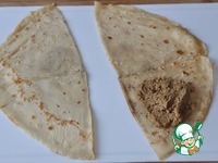 Заворачиваем блин "треугольником", слегка приминаем паштет. |