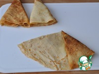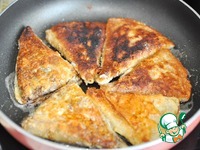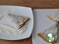 Кладём блинные "треугольники" и обжариваем до румяной корочки с обоих сторон. |