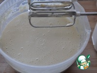 В глубокой посуде смешиваем тёплое молоко, соль, сахар, яйца, муку, разрыхлитель, всё перемешиваем. |