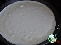 Из этого количества у меня получилось 16 блинов. На 1 порцию (3 шпажки), нам понадобится 3 блинчика. |