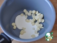 Готовим глазурь из белого шоколада. Смешиваем белый шоколад и сливки, нагреваем на медленном огне, помешивая, до растворения шоколада. |