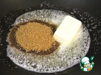 На сковороде растапливаем сливочное масло с коричневым сахаром. |