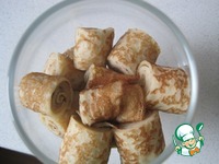 Описание: Питательный и богатый витаминами десерт с фруктовым соусом, который пропитывает своими ароматами и сочностью блины и кусочки фруктов. Это идеальный, насыщенный витаминами завтрак, ужин или полдник, который принесет вам неимоверное наслаждение и сытость!