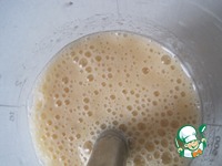 Готовим соус. Смешиваем сок яблока и апельсина и вместе с бананом доводим до однородной консистенции. |