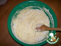 Продолжая взбивать, добавляем молоко, затем осторожно, чтобы масса не опала подмешиваем ПРОСЕЯННУЮ муку (2,5 стакана) и еще немного взбиваем. |