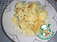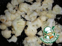 Цветную капусту разобрать на соцветия, хорошо промыть. Отварить в подсоленной воде после того как закипит 5 минут. Откинуть на дуршлаг, но не давать обсохнуть. Сыр натереть на крупной терке. |