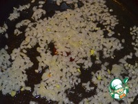 Тем временем мелко режем лук и обжариваем до прозрачности на подсолнечном масле. |