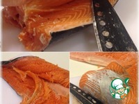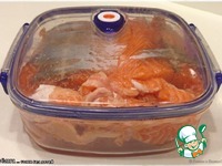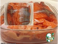 Филейки можно разрезать на крупные куски. По размеру, например, лотка в который рыбу укладываем. Плотно. |