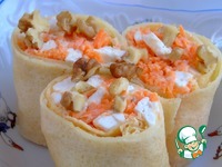 При подаче можно нарезать блины кусочками и при желании присыпать орешками... |