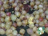 Добавляем в сковороду виноград, тимьян и цедру лимона, готовим до мягкости винограда |