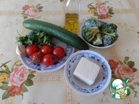 В чашку выкладываем нарезанные овощи, брынзу, брокколи. Добавляем заправку. Перемешиваем. Отправляем на 15-20 минут в холодильник. |