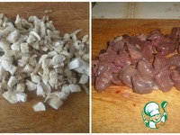 Промываем и нарезаем печень и грибы. |