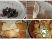 На блин выкладываем 1 ст. л. ложку начинки. Сворачиваем блин конвертиком. Выкладываем начиненные блины в форму для запекания. |