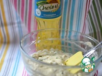 Порциями добавить муку, брынзу и нарезаный лук. Перемешать. Добавить подсолнечное масло "Олейна" Оставить на 5 минут. |