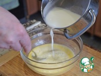После этого через ситечко вылить смесь в форму. |