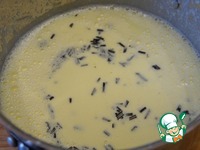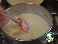 Молоко нагреть вместе с сахаром и солью до горячего состояния, но не кипятить. Медленно влить молоко в желтки, постоянно взбивая, затем вылить смесь обратно в кастрюлю. |