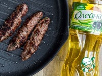 Формируем кебабы и жарим на сковороде гриль с добавлением масла. |