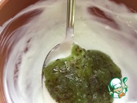Сметану смешайте с пюре из киви, добавьте сахар, размешайте и оставьте до полного растворения сахара, затем еще раз размешайте. |