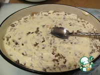 Этот слой смазать майонезом, не жалея оного. Иначе не пропитается печень |