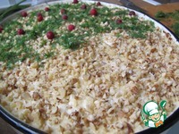 Грецкие орехи изрубить как можно мельче. (В этот раз я поленилась))) Украсить брусникой и укропчиком. |