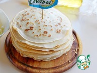 Затем приступаем к приготовлению блинов. Обжарить блины на сухой сковороде, смазав ее только перед выпечкой первого блина. |