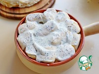 Для сметанной заливки смешать сметану тоже с высоком % жирности с маком и сахаром. |
